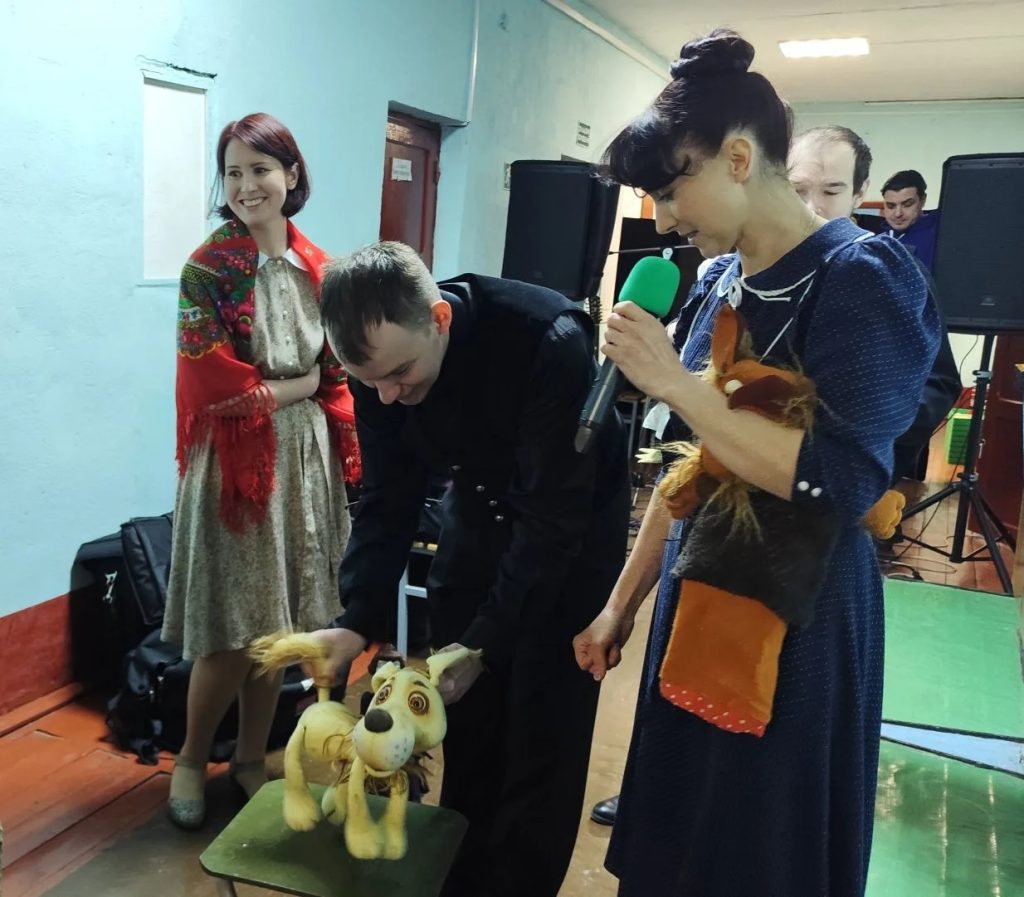 Артисты Мурманского областного театра кукол Тамара ЛашинаЛилия ФедосенкоАртём Мясников и Александр Сапожников вместе с руководителем литературно-драматургической части Алексеем Макаровым и звукорежиссёром Александром Кутузовым работали в условиях, максимально приближенных к полевым – концертная площадка была организована прямо в коридоре казармы. Артисты порадовали военнослужащих номерами из концерта «Стоит над горою Алёша»: сатирической репризой времён Великой Отечественной войны с ширмовыми куклами «Новогоднее гадание в немецкой канцелярии», лирическими песнями и частушками военных лет, чтением стихов и живым общением со зрителем. Самыми яркими моментами выступления, по словам зрителей в погонах, стали девушки в лёгких летних платьях, поющие про любовь, и возможность попробовать себя в качестве артиста-кукловода. Традиционным финалом выступления стала беседа о системах театральных кукол, во время которой каждый зритель мог взять в куклу в руки.