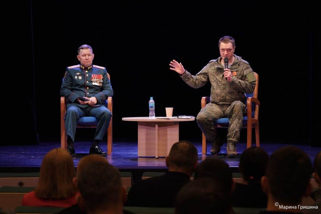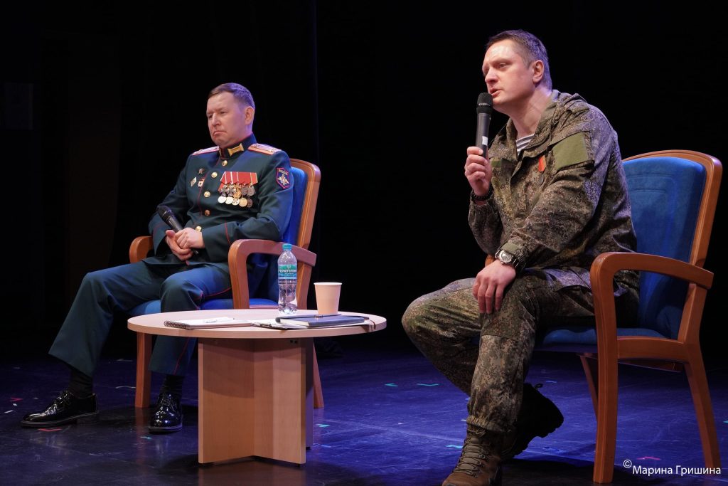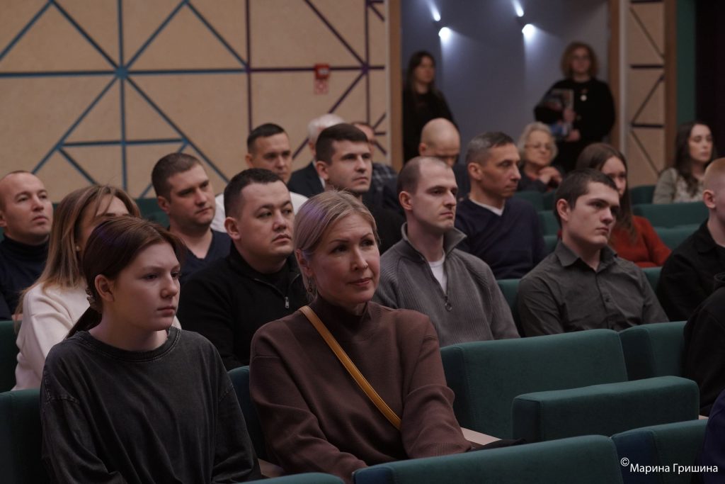 А потом Евгений Владиславович предложил сделать общее фото. И весь зал — и те, кто сидел в креслах, и те, кто стоял на сцене, — поднялся и вышел вместе. На несколько минут все стали одним целым. Герои, зрители, молодёжь, военные — просто люди, которым есть что помнить и кем гордиться.