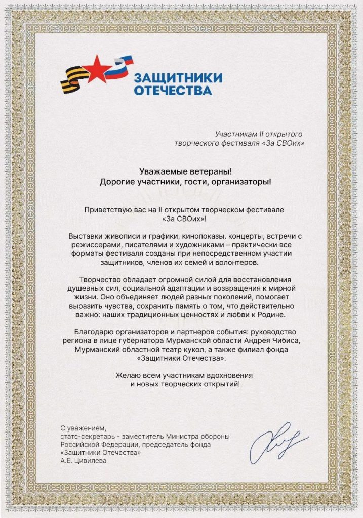 Обращение к участникам II открытого творческого фестиваля «Za СВОих»